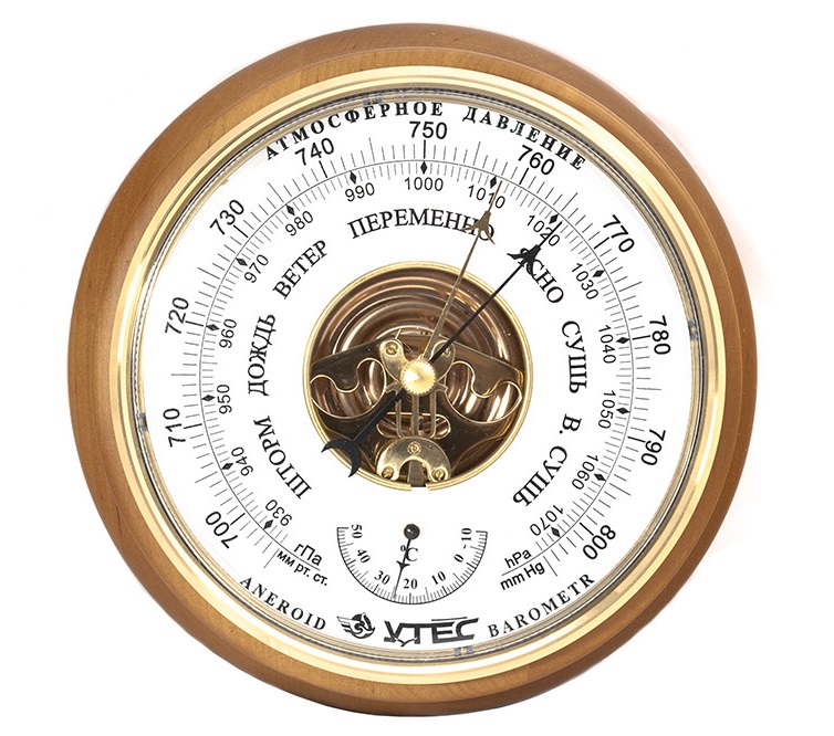 Бытовой барометр БТК-СН8 служит для измерения атмосферного давления и температуры воздуха внутри помещения. Прибор спроектирован и изготовлен ОАО "Утёс" в Ульяновске, являющимся ведущим предприятием аэрокосмической отрасли. Работает от воздействия атмосферного давления на анероидный элемент. Термометр биметаллический. С помощью барометра можно подготовиться к любым капризам погоды, а для метеозависимых людей он просто незаменим.