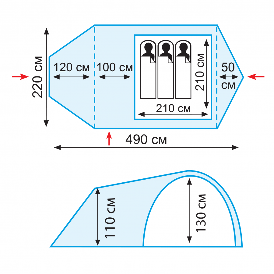 Габариты внутренней палатки (ДхШхВ): 1/240