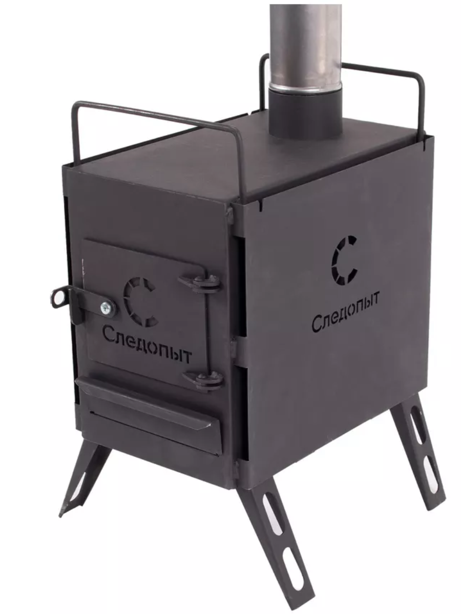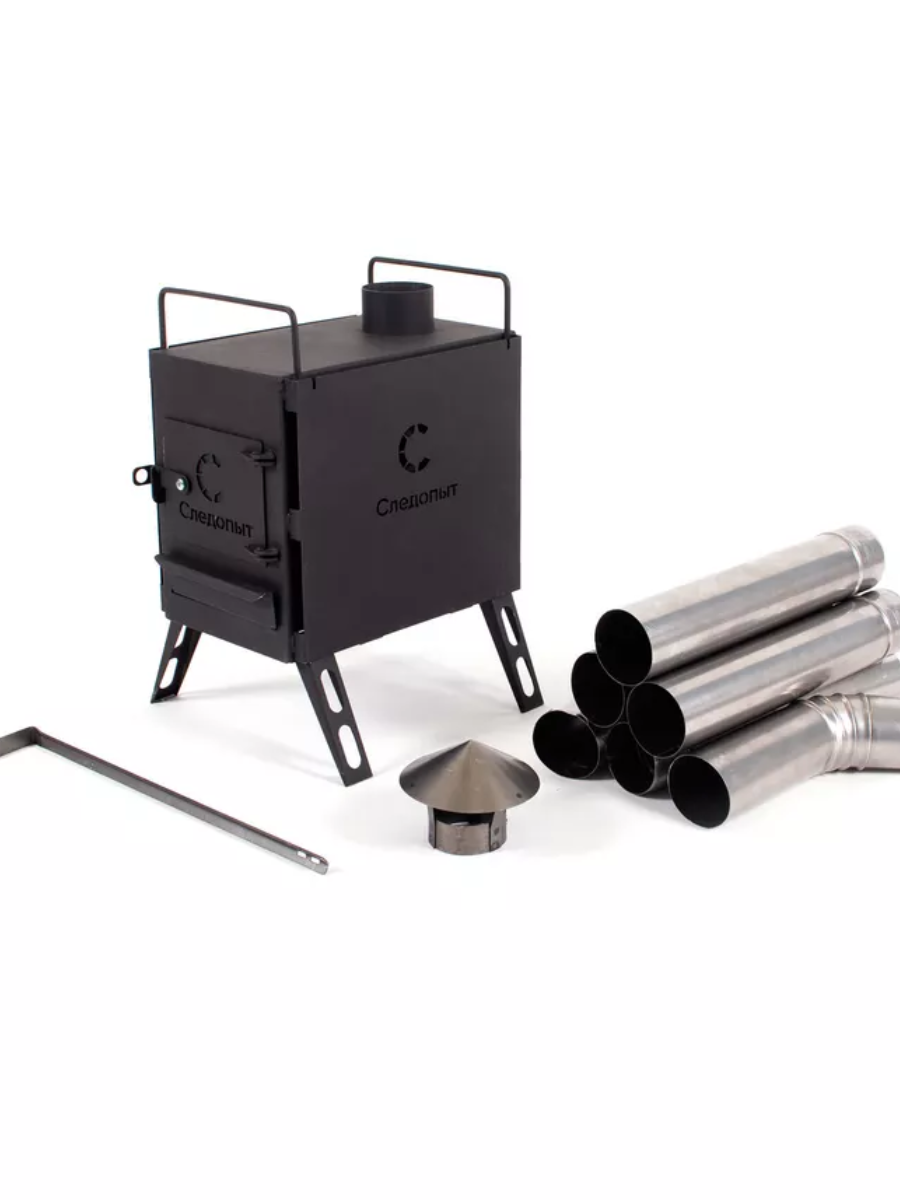 Малая дровяная печь СЛЕДОПЫТ предназначена для отопления зимней палатки. В качестве топлива предусмотрено использование дров или топливных брикетов. Размер дров не должен препятствовать плотному прилеганию дверцы камеры сгорания. Печь изготовлена из стального листа толщиной 2 мм. Дымоотвод изготовлен из стального листа толщиной 0.5 мм. В комплекте трубы, кочерга и сумка для хранения.