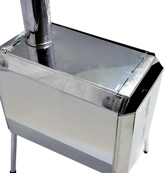 Печка Турист объёмом 25 л – это легкая, надежная в использовании походная печка с высокой удельной мощностью: тонкие стенки обеспечивают максимальную теплоотдачу. Изготовлена из огнеупорной высоколегированной нержавеющей стали AISI 304, что гарантирует длительный срок эксплуатации. Предназначена для обогрева зимней палатки на 2-3 человек или небольшой комнаты и приготовления пищи. Работает на дровах и прессованных топливных брикетах. Одной закладки топлива хватает на 2-5 часов работы. Все продукты горения выводятся наружу через вытяжную трубу.