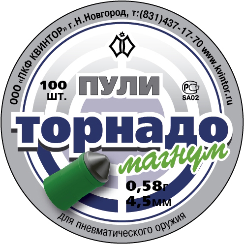 Пули КВИНТОР Торнадо-Магнум (0.58 г, 100 шт)