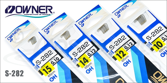 Серия поводков Owner S-282 предназначена для ловли белой рыбы поплавочными и донными снастями. Длина поводка составляет 65 см, отсутствие петельки позволяет регулировать ее прямо на месте ловли. Соответственно размеру крючка изменяется и диаметр поводка (от 0.09 до 0.16 мм). И если миниатюрные крючки на тонкой леске предназначены для ловли мелкой рыбы, то крупные крючки с прочной леской легко справятся и с трофейными экземплярами. Крючки этой серии имеют стойкое коричневое покрытие.