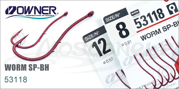 Крючок OWNER 53118 Red Worm SP-BH (№10, 8 шт)