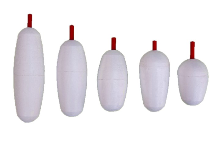 Набор 1901 05 от абаканской Черная Речка состоит из пяти небольших пенопластовых поплавков разной грузоподъёмности, которые отлично подходят для использования на реках со слабым течением.
