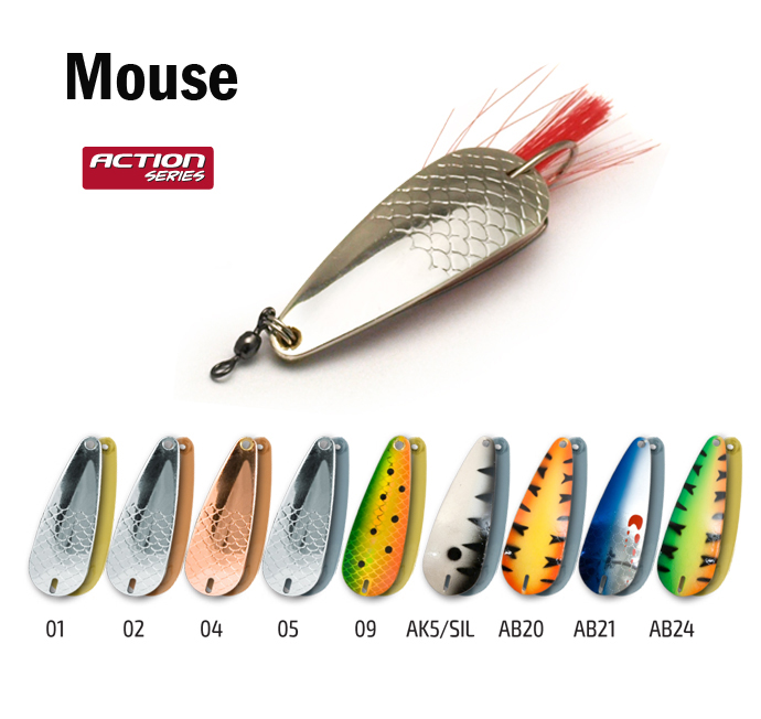 AKARA Weedless Mouse – блесна-незацепляйка с каплевидной формой тела, благодаря этому имеющая высокие аэродинамические характеристики при забросе. Два металлических усика, которые можно индивидуально настраивать, подгибая в зависимости от условий лова, надежно защищают крючок от зацепов.