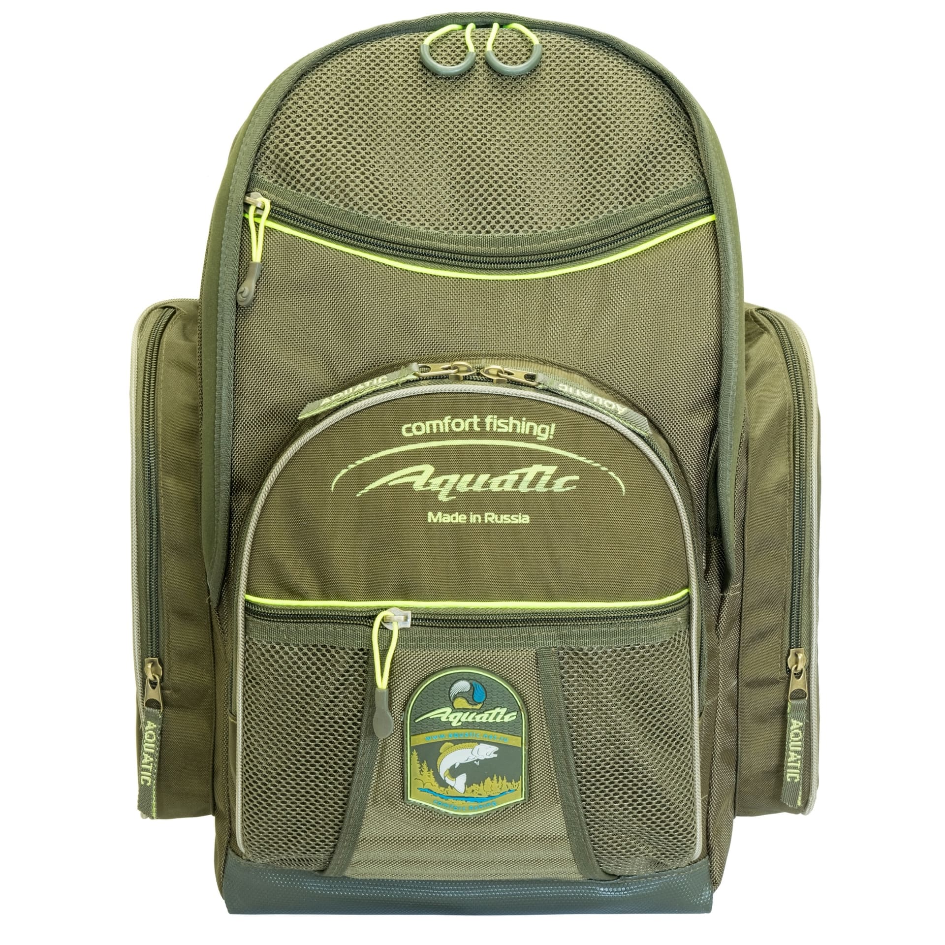 Рюкзак Aquatic Р-33 состоит из общего отделения и 5 изолированных карманов, 3 из которых – вентилируемые. Вход в основное отделение защищен от влаги неопреновой лентой. Рюкзак имеет стандартную подвеску с грудной регулировкой и уплотненную спинку. Рюкзак Aquatic Р-33 популярен не только для рыбалки, но и как небольшой городской рюкзак для повседневной носки.