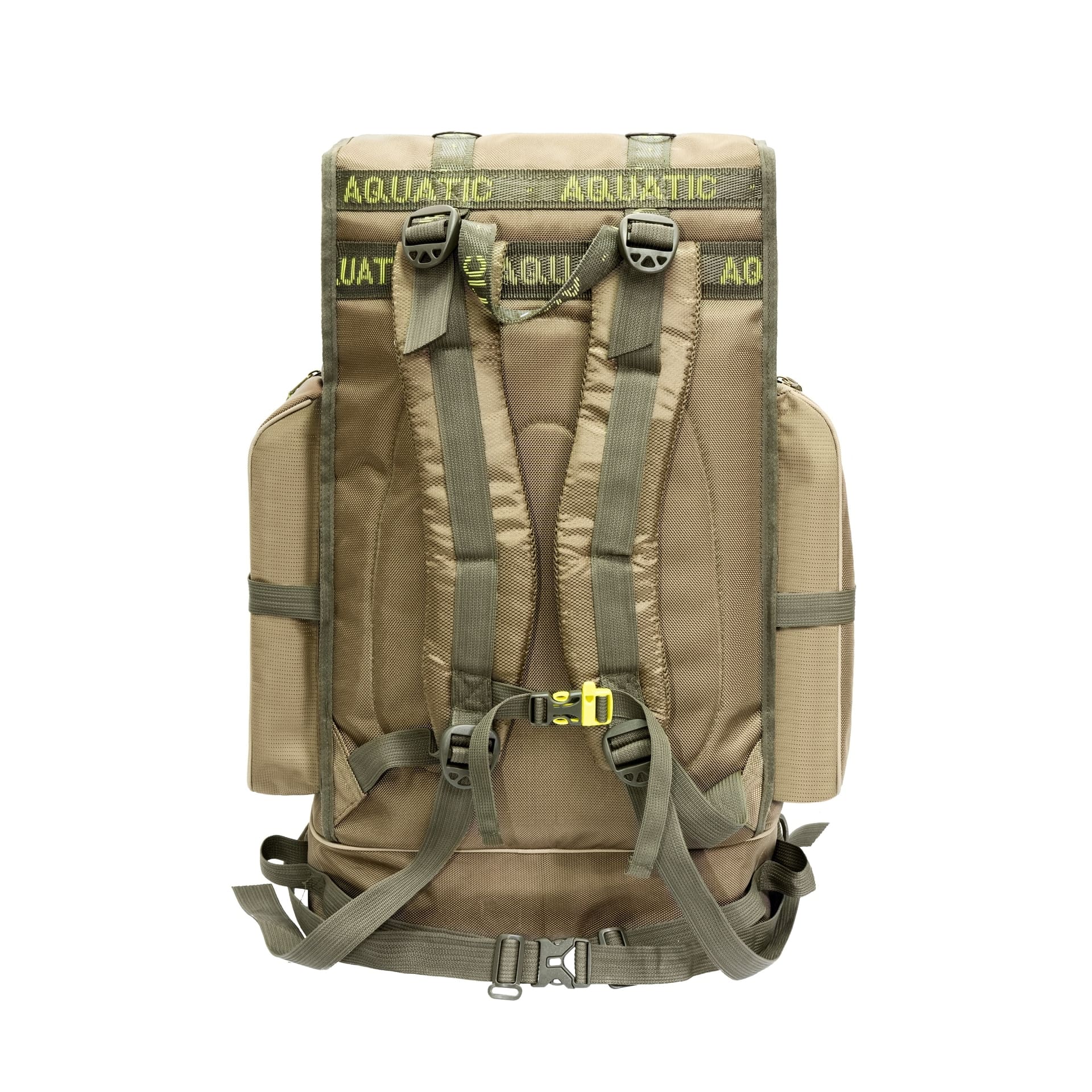 Рыболовный рюкзак Aquatic Р-50 изготовлен из влагостойких нейлоновых материалов повышенной прочности. Доступ к основному отделению осуществляется через большой вертикальный вход. Имеется нижнее вентилируемое отделение для обуви или мокрых вещей. Также модель снабжена пятью внешними карманами и множеством лямок для закрепления дополнительного оборудования снаружи. Уплотнённая основа и комфортная подвеска с грудной регулировкой дают возможность очень широкого применения изделия. Рюкзак Aquatic Р-50 пользуется большой популярностью у рыболовов и охотников благодаря оптимальному сочетанию качества, функциональности и цены.