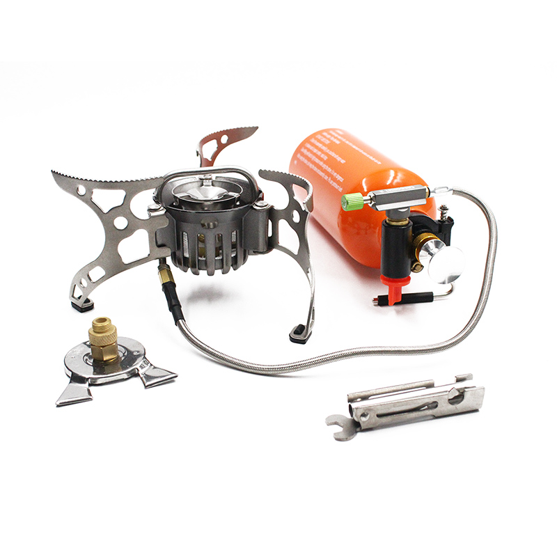 Насосный узел мультитопливной горелки СЛЕДОПЫТ "Огонь Прометея-1" имеет резьбовую посадку, идентичную клапану газового баллона, поэтому можно запитать горелку и от газовых баллонов, и от топливной фляги, не сменяя клапан. Топливная фляга 0.5 л, переходник с резьбового на цанговый баллон и тканевый чехол в комплекте.