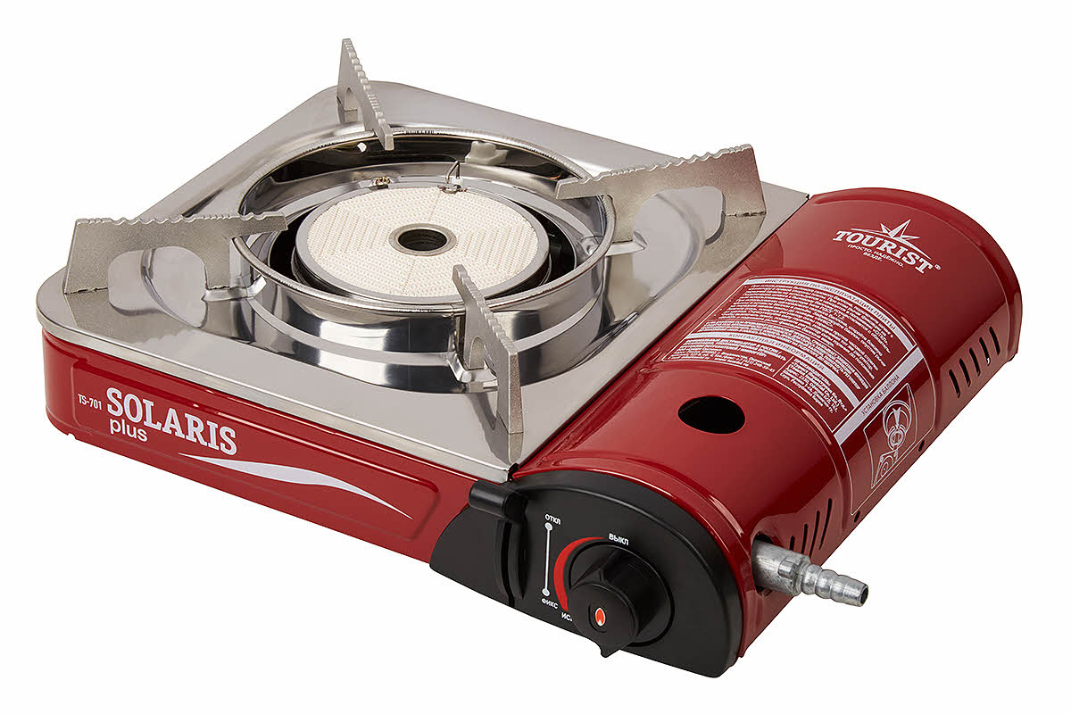 Портативная газовая плита TOURIST Solaris Plus TS-701 имеет хромированную верхнюю часть корпуса, что препятствует быстрому загрязнению конфорки и защищает плиту от коррозии. Плита оснащена пьезоподжигом, защитой от неправильной установки баллона и системой предотвращения утечки газа. Также модель имеет клапан избыточного давления. В совокупности эти технологии обеспечивают полностью безопасное использование прибора.