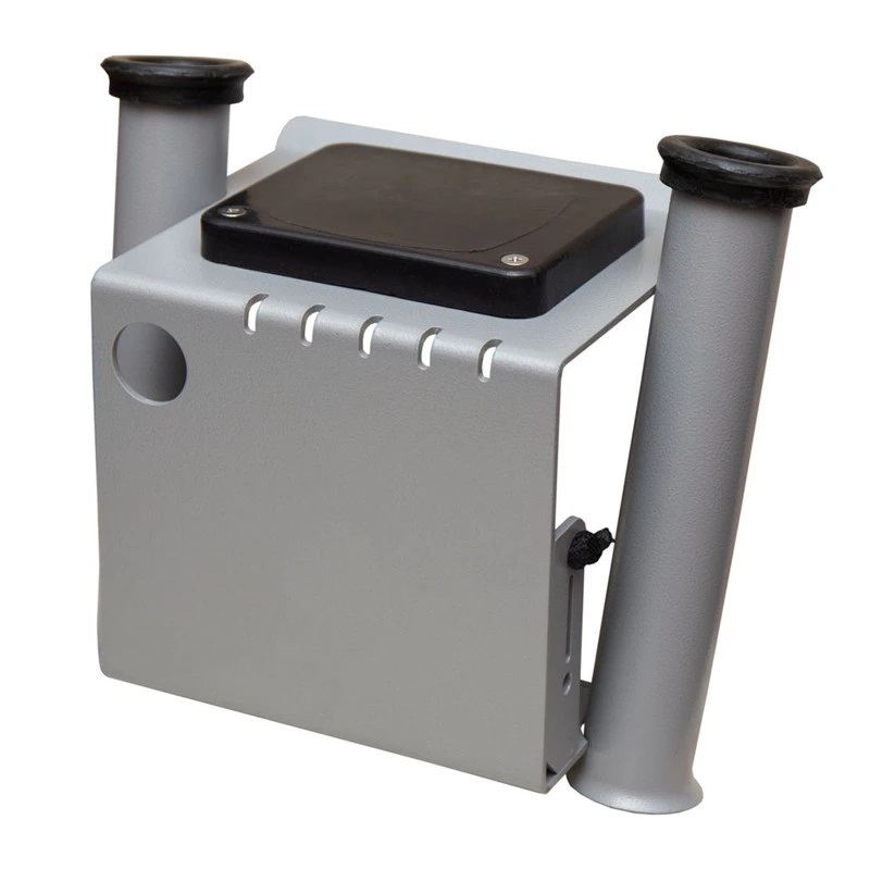 Универсальный держатель предназначен для транспортировки двух удилищ в лодке. Крепится к баллону с помощью системы «ликтрос-ликпаз» и может передвигаться по длине кокпита. Имеет отверстия для пяти воблеров, блесен и прочих приманок и аксессуаров, которые необходимо держать под рукой.