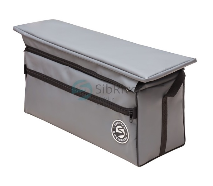 Сумка-сиденье SibRiver служит для обеспечения комфорта при длительном пребывании в лодке. Крепится к банке при помощи стропы с застежкой. Аксессуар выполнен из ткани ПВХ, что обеспечивает защиту от сырости. Внутри накладки вставлен термоизолирующий пенофол, который можно заменить или уплотнить через специальную молнию в торце. Съёмная сумка на молнии предназначена для хранения снастей и оснащена лямками для переноски.