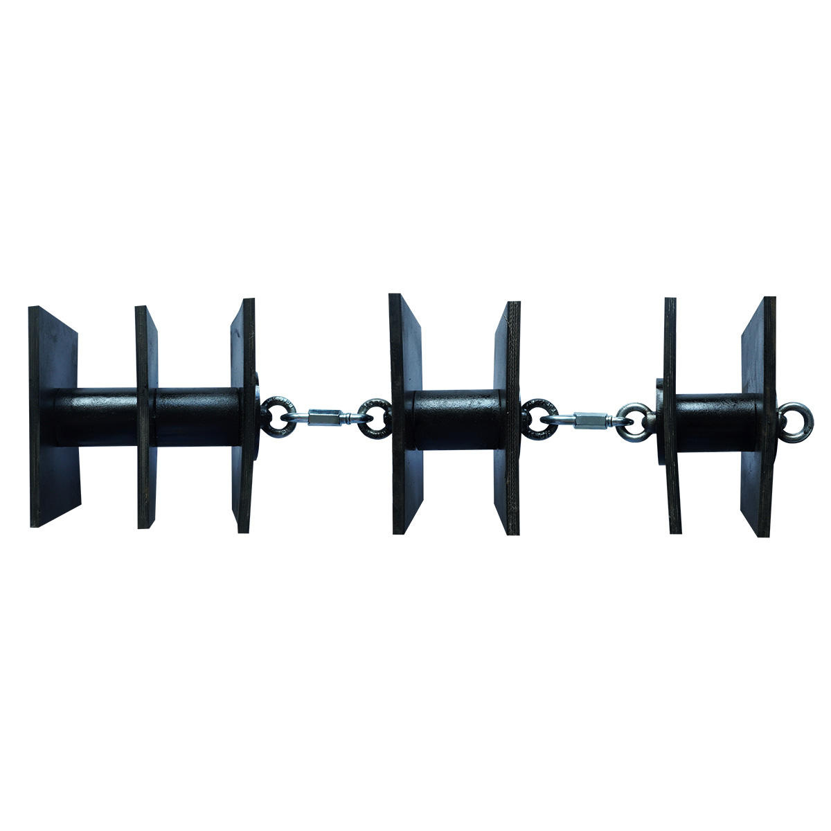 Якорь для рыбалки "на покатуху". Изготовлен из стали и резины. Общий вес 10 кг. При необходимости вес можно уменьшить до 7.5 или 5 кг, разобрав якорь. Части соединены карабинами.