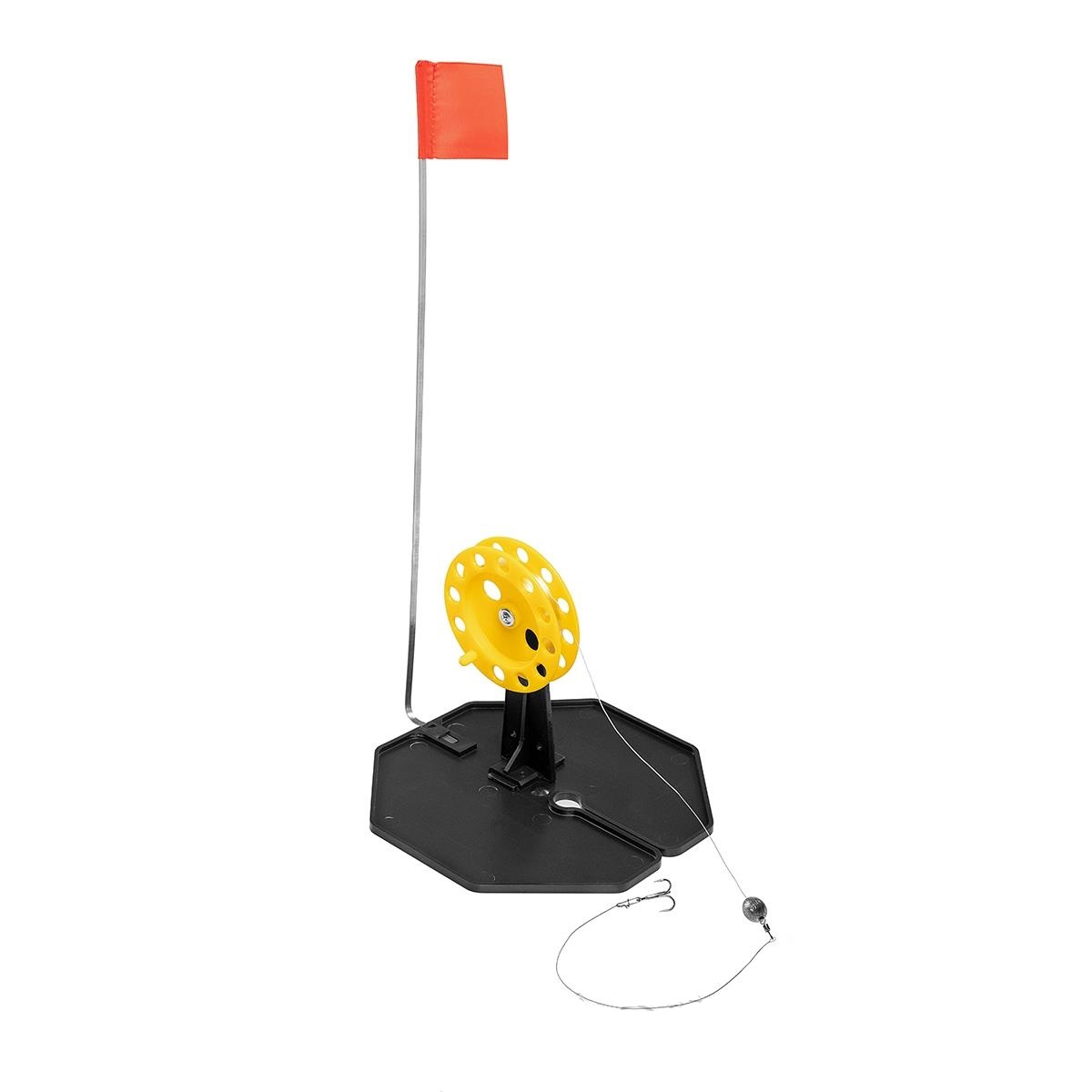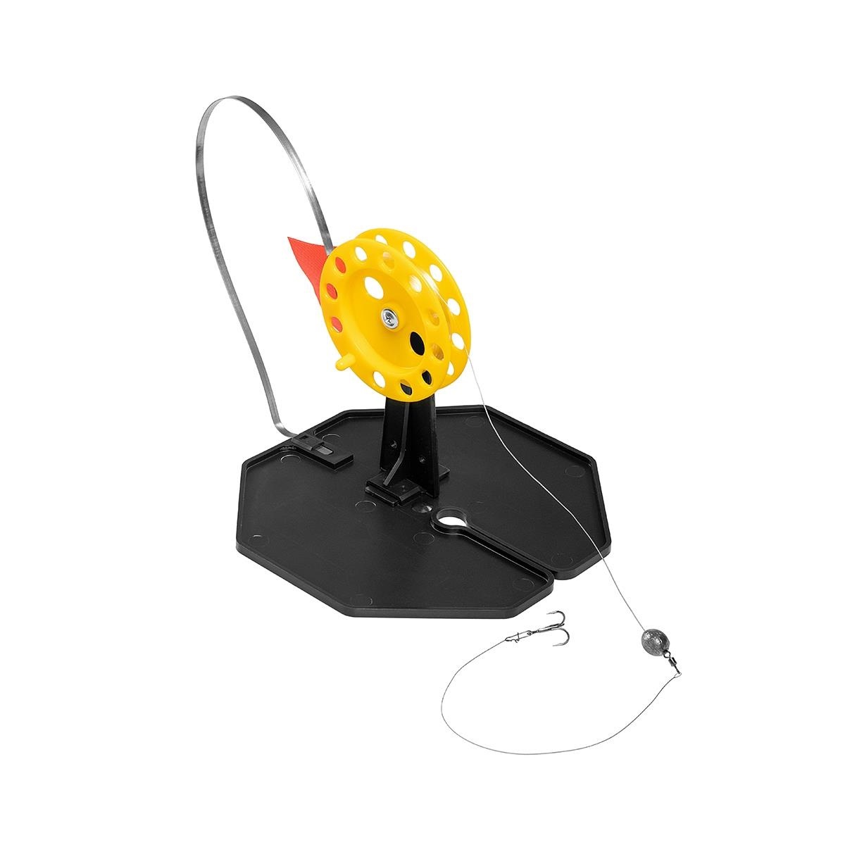 Жерлица зимняя оснащенная ТОНАР ЖЗО-02М для подледной ловли рыбы состоит из основания, стойки с катушкой и флажка-сигнализатора. Большое и прочное основание жерлицы из морозостойкого полипропилена гарантирует затемнение и защиту лунки от замерзания.