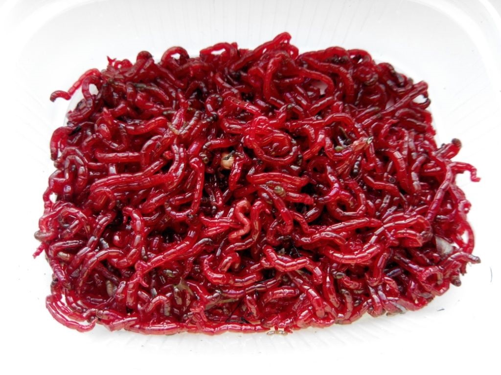 Крупный отсортированный мотыль для рыболовной насадки и прикормки. Порция примерно со спичечный коробок.